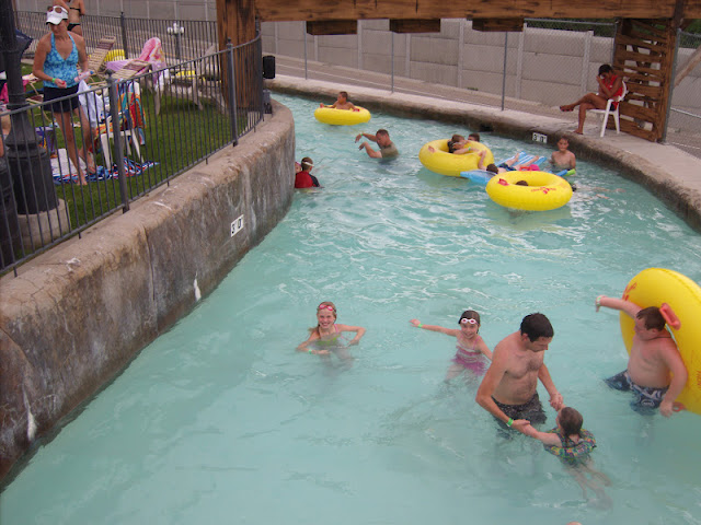 Kysson, Dad and Paisley. We are watching everyone float in the Lazy River. Kysson would take off a lot to swim in the pool. I think it was his favorite. :)