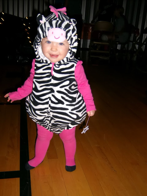 Paisley is walking around the gym. She is the cutest Zebra ever! It was so funny, Ryan thought she was a chicken. Guys have no idea.