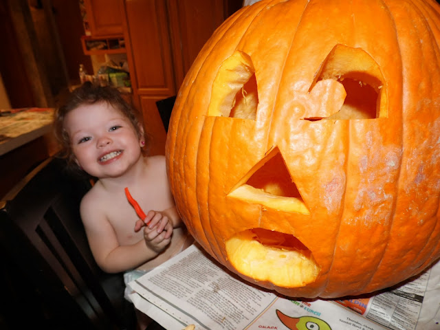 I cleaned and carved Emmy's pumpkin for her.