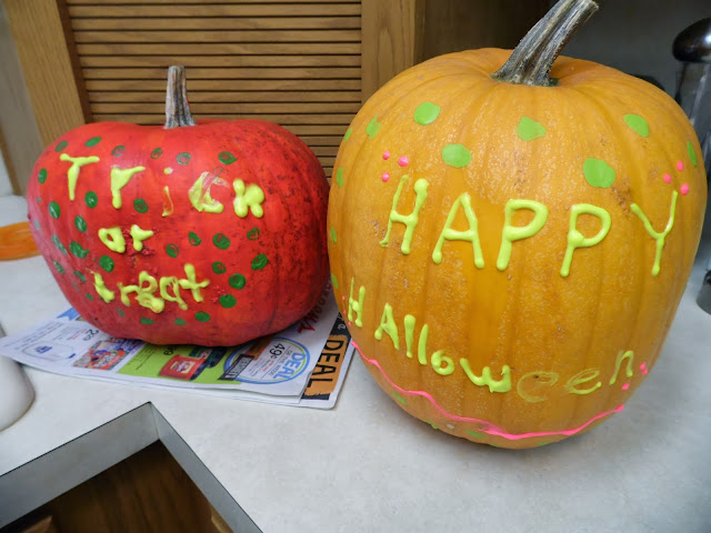 Kalyssa's and Baylee's painted pumpkins. They used puff paints.