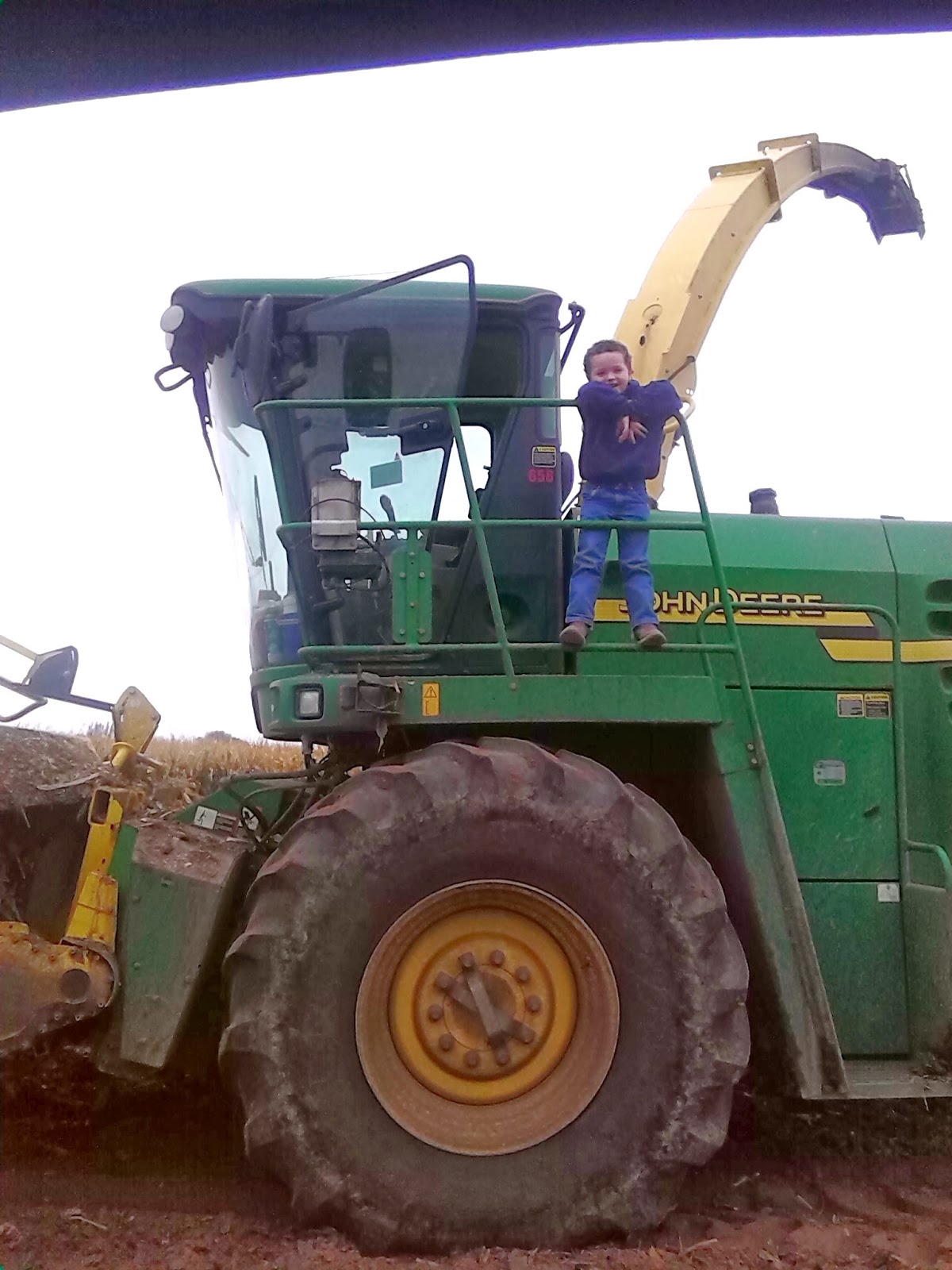 Ron (the boss) is always running the chopper, but he took the day off, so Brandon gets the job and Will finally gets to ride in the chopper with his Dad. The chopper is the biggest machine at the barn. The tires are taller than me.